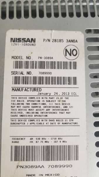 VERSA 13 (receiver), (AM-FM-CD), (Sdn), w/o navigation; w/o Bluetooth