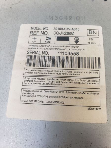Audio Equipment Radio Receiver AM-FM-cassette-6 CD Fits 03-04 MDX 970575