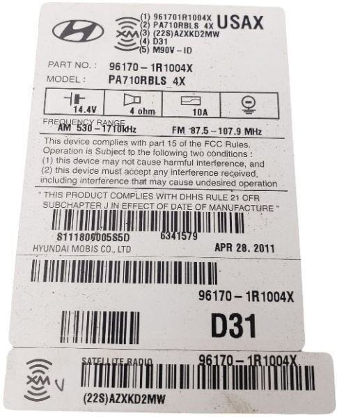 Does Not Apply 96170-1r1004x This Part Will Fit These Makes And Models With These Options ACCENT 12-13 (AM-FM-stereo-CD-satellite-MP3), US market, w/o BluetoothACCENT 14 (AM-FM-stereo-CD-MP3), US market (satellite), w/o Bluetooth; w/auxiliary jackRegular price $34.87 -