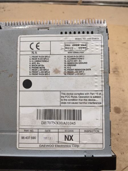 Audio Equipment Radio Opt UM7 ID 96408391 Fits 04-06 08 AVEO 318970